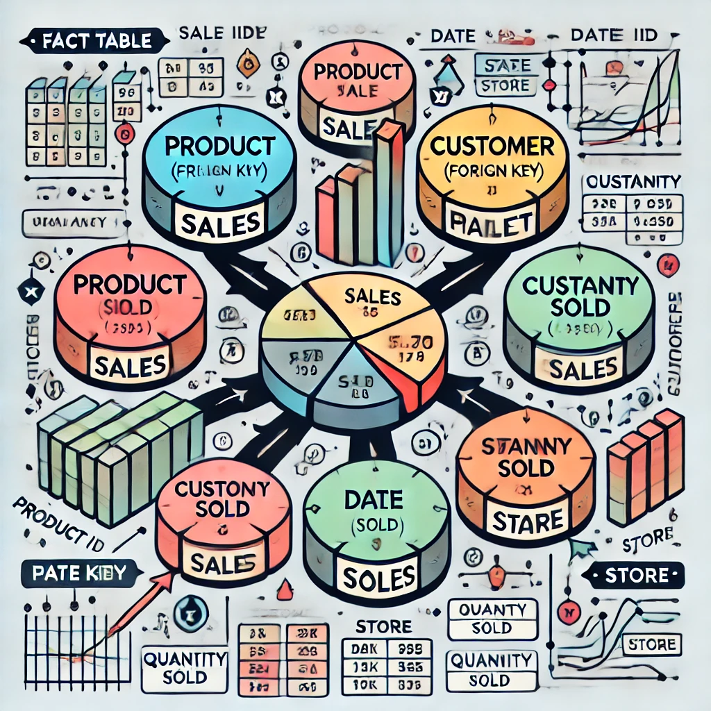 - Fact Table: Contains the quantitative data for analysis, such as sales amounts or quantities. The fact table links to dimension tables through foreign keys.